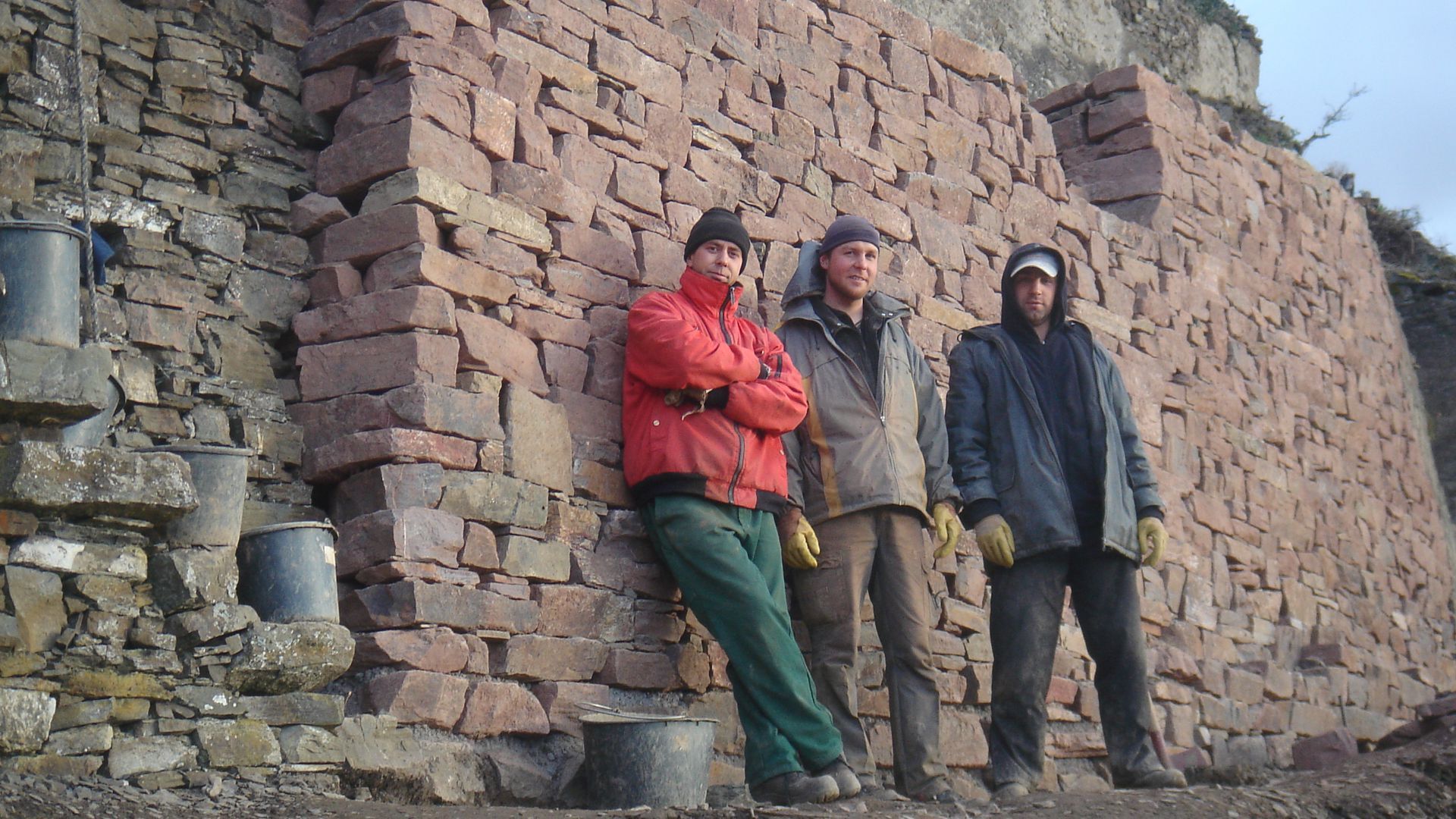 Bei der Weinbergsarbeit kullern übers Jahr viele Steine hangabwärts und liegen dann meist auf der Mauern und auf den Treppen. Ganz schön gefährlich, da es hier auf einen sicheren Tritt ankommt. Ein Arbeitsgang im Winter heißt daher: "Mauern abschöpfen". Die Steine werden dabei auf die jeweils untere Terrasse geschaufelt. Da so von der obersten Terrasse immer mehr Steine verschwinden muss sie in regelmäßigen Abständen gekümmert werden. Dort, wo die höchstgelegene Terrasse an einem Fels endet, wurden früher Steine gebrochen, mit einem schweren Hammer zerkleinert und dann gleichmäßig verteilt. Bis in die 1950er Jahre, wie ältere Kollegen berichten.