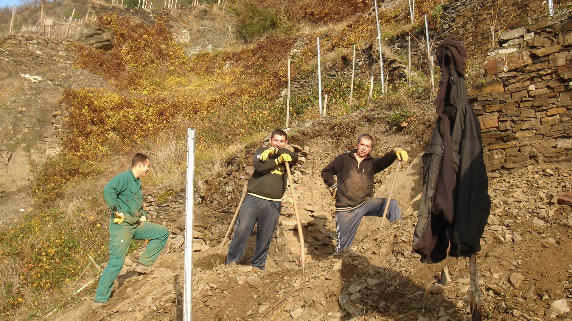 verschandelt wird und das Amt für Denkmakschutz (ja, unsere Mauern stehen tatsächlich unter Denkmalschutz!) nicht hinsehen will. Gerade mal 0,5 Prozent der deutschen Weinberge sind noch traditionell terrassiert. Und da sollte es doch gerade bei wachsendem Bewusstsein für Ökologie und Nachhaltigkeit und von mir aus auch romantisierender Heimat möglich sein, dass...