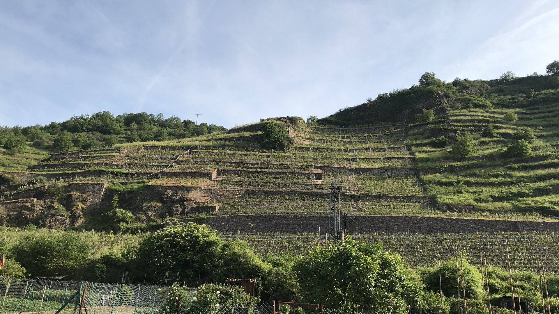 Geological definition: Devonian, Nellenköpfchen hillside layers. A gray-brown, in some cases highly platy sandy slate. We cultivate two parcels here, totaling 0.6 ha. Orientation: South, elevation 100 - 180 m, slope 100 to 150%, average age of vines: over 40 years. Classification: VDP.GROSSE LAGE.
