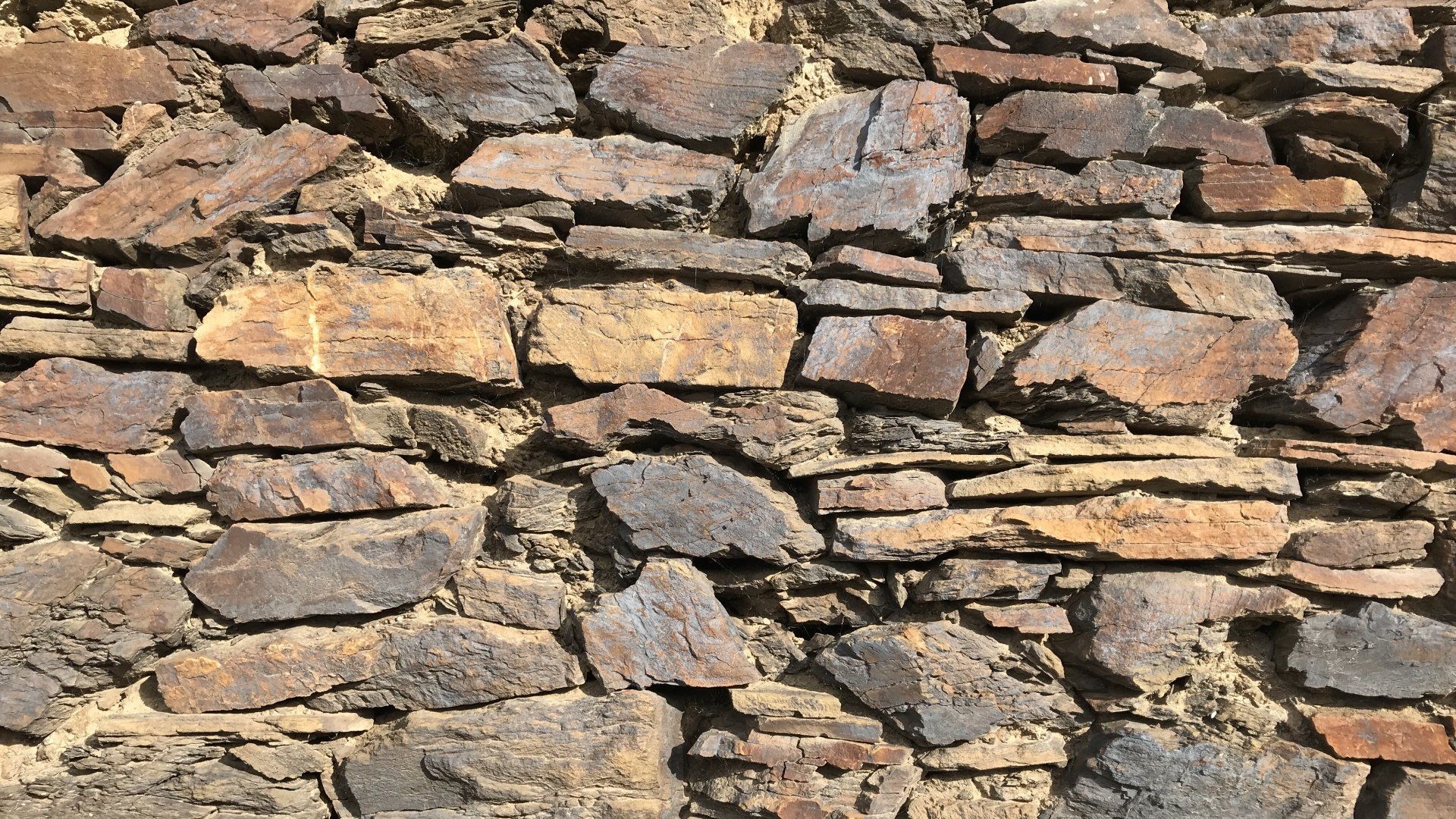 Genug geschimpft. Es gibt auch sehr viele wunderschöne Mauern. Und es gibt in Ministerien und Behörden engagierte Menschen, die sich für die Weinbergsmauern stark machen. Traditionell sind sie trocken, ohne Verwendung von Mörtel, aufgesetzt. Das hat den großen Vorteil, dass bergseitiges Wasser abfließen kann und dass Eidechsen, Schlingnattern & Co einen optimalen Lebensraum haben. Aber auch für die Haltbarkeit der Mauer selbst ist die Trockenbauweise von entscheidendem Vorteil. Mörtel verwittert schneller als Stein. Schon nach 100 Jahren sollte die Mauer daher Probleme bekommen. Wenn Stein auf Stein gelegt wird, und zwar so, dass mit kleinen Steinen so lange unterlegt wird, bis nichts mehr wackelt, korreliert die Lebensdauer einer Mauern mit der Härte des Schiefers. Bei sehr weichen Schiefern beträgt die Halbwertzeit ca. 200 Jahre, bei härteren Steinen mehr als das Doppelte. Natürlich nur, wenn kein größerer Bergrutsch entsteht und wenn beim Mauern selbst die essentiellen Regeln eingehalten werden: Keine senkrechten Fugen, keine waagerechten Fugen, die länger sind als 80 cm und eine Neigung gegen den Berg von ca. 3°. Die schöne Seite des Steins, das Gesicht, zeigt nach vorne und ist so verlegt, dass, falls nicht rechtwinklig gebrochen, die obere Kante weiter vorsteht, als die untere Kante.